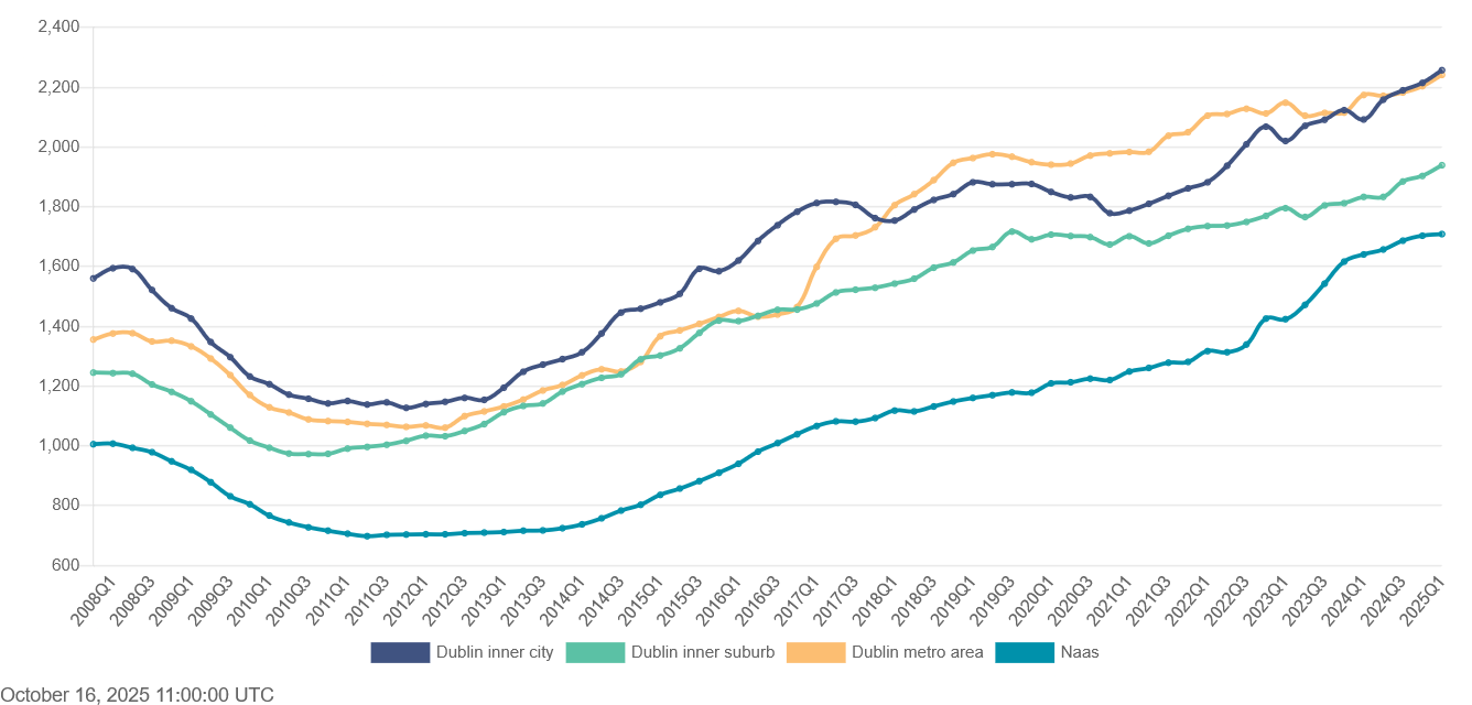 Between 2016 Q1 and 2017 Q1 rent prices in inner Dublin (Donnybrook in our example) increased by 11%; and by more that 5% in Q1 2021 Q1 and 2022 Q1.