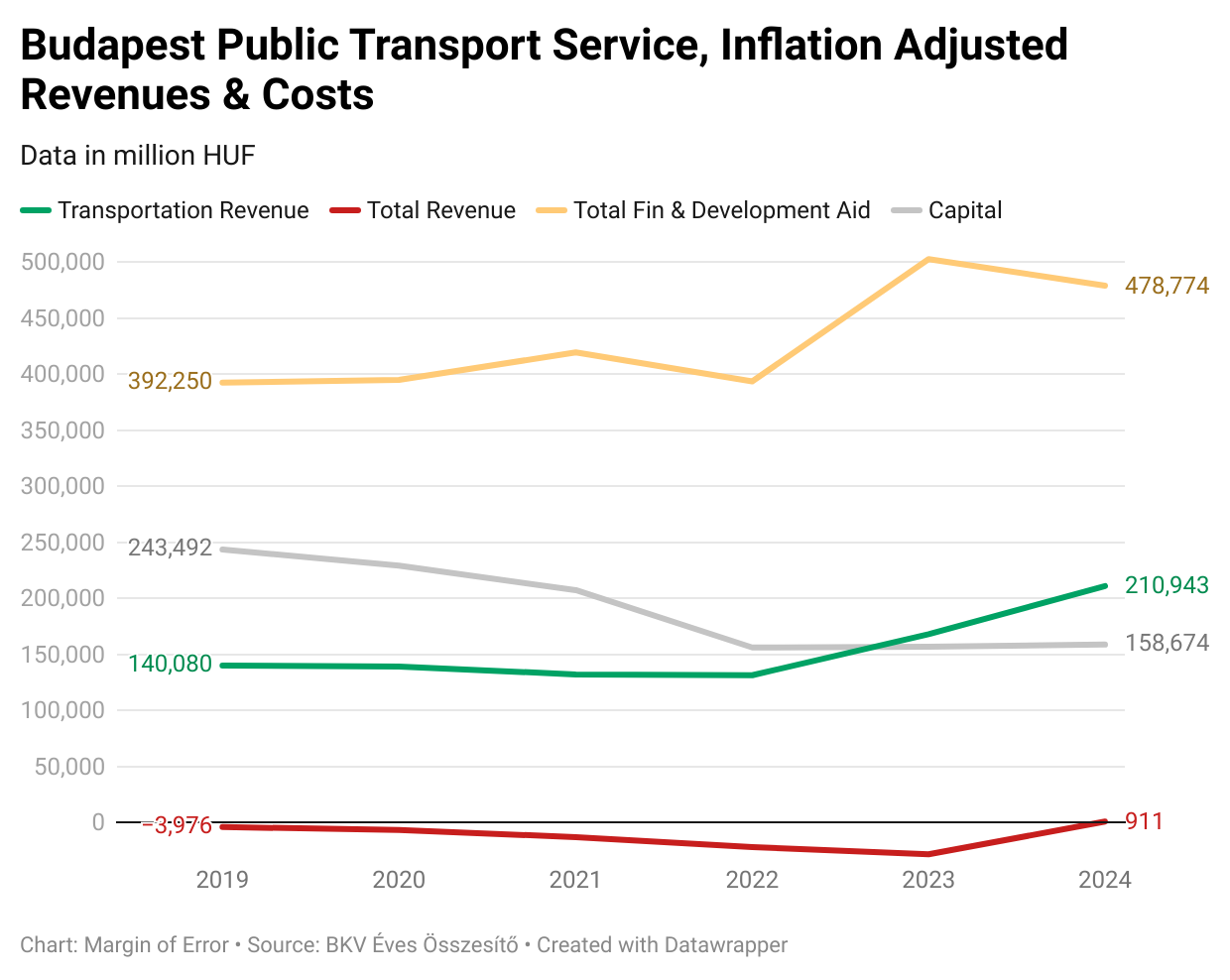 So newly discounted and in some cases downright free passes didn’t seem to leave a dent immediately in the profitability or revenues of the BKK, as the decreases mainly occurred during the Covid years. Since then both revenues and profitability have risen suggesting that these discounts are not detrimental to the BKK’s financial health. Capital decrease is, again, something to monitor but I wouldn’t relate that to the discounts/subsidies (as it’s mainly driven by amortization of assets, and personnel related costs as per the published yearly summaries) given the transportation revenues being constant or increasing.