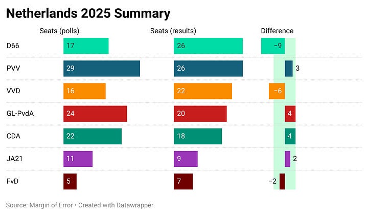 All in all we also must not forget that polling works with fundamentally human data, often obfuscated by emotions so we shouldn’t expect it to be perfect. While missing the mark on who won understandably will make us raise questions as it should, we must remember that polling is not like looking into a crystal ball. We’ll go into why polling is hard soon in a dedicated series of posts so keep an eye out (and hit subscribe, just do it) for it if you are curious about how it works behind the scenes and just how easy it is to run into obstacles or make mistakes even if they try to do everything right